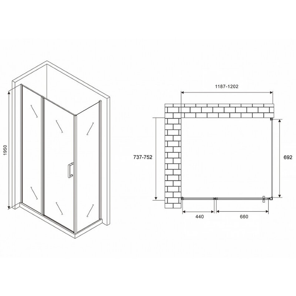 Душевой уголок Abber Sonnenstrand, 120 х 75 см, стекло прозрачное, профиль хром, AG04120S-S75