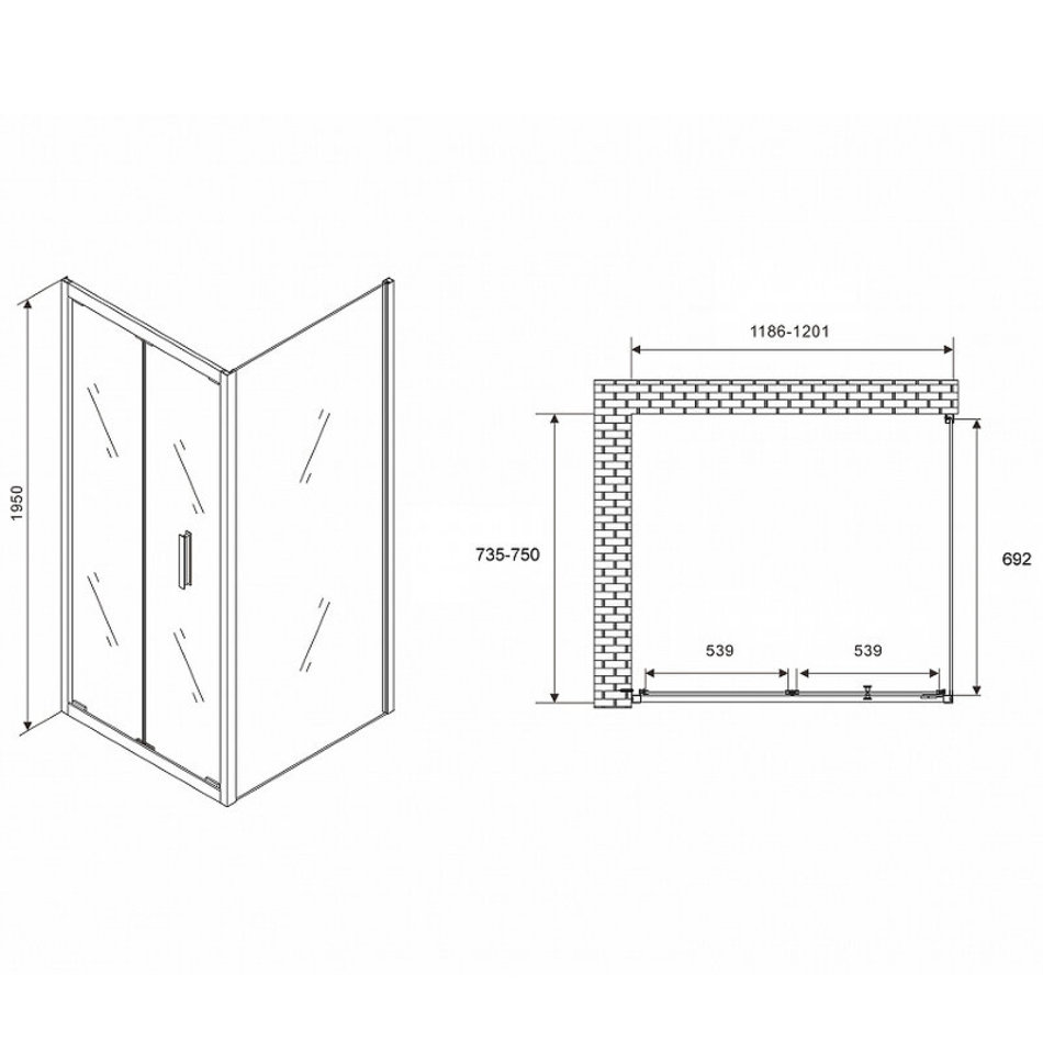Душевой уголок Abber Sonnenstrand, 120 х 75 см, стекло прозрачное, профиль хром, AG07120-S75