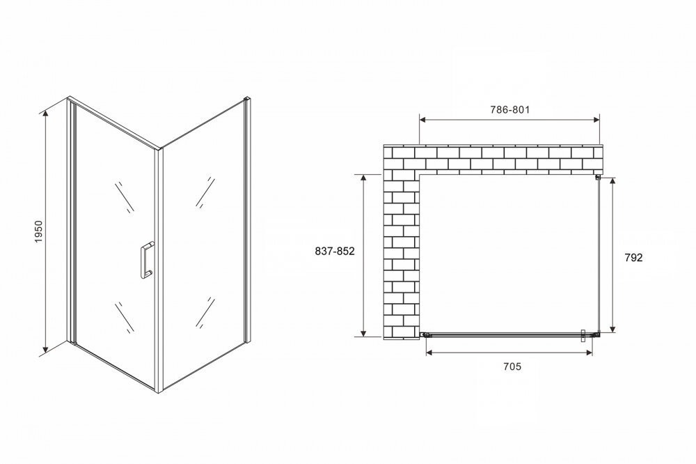 Душевой уголок Abber Sonnenstrand, 80 х 85 см, стекло прозрачное, профиль хром, AG04080-S85