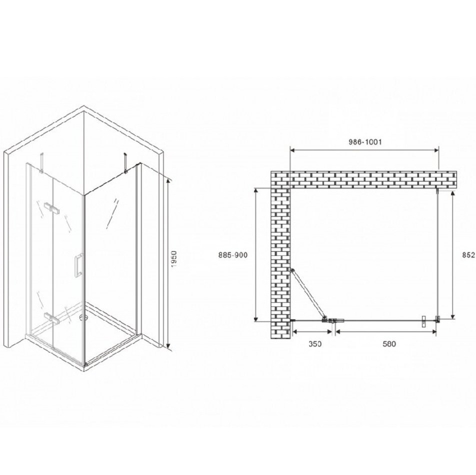 Душевой уголок Abber Zart, 100 х 90 см, стекло прозрачное, профиль хром, AG08100-S91