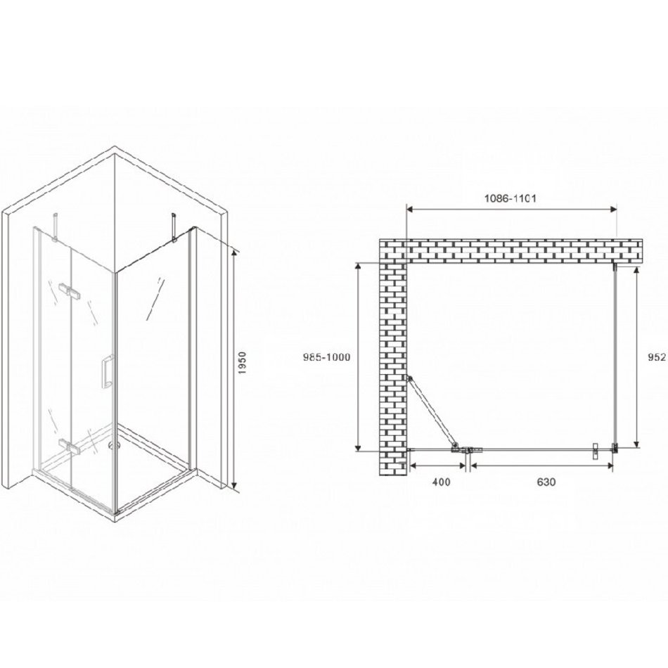 Душевой уголок Abber Zart, 110 х 100 см, стекло прозрачное, профиль хром, AG08110-S101