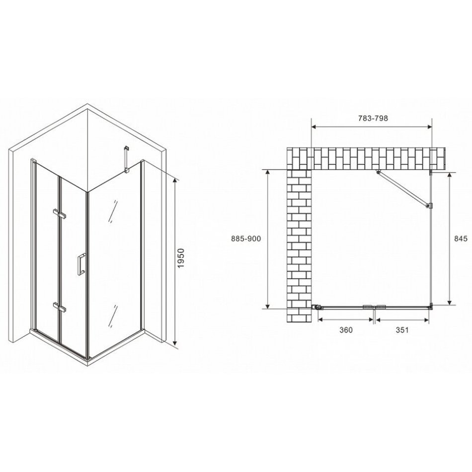 Душевой уголок Abber Zart, 80 х 90 см, стекло прозрачное, профиль хром, AG08080P-S91