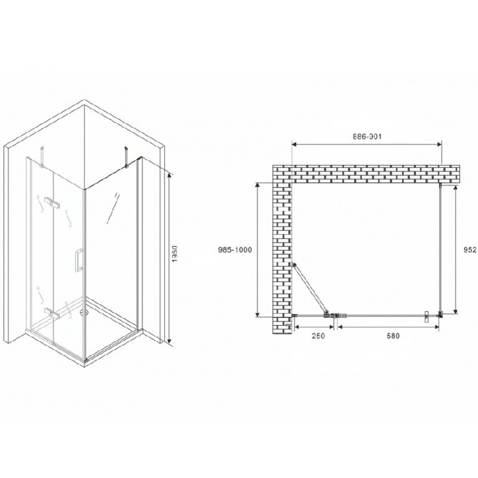 Душевой уголок Abber Zart, 90 х 100 см, стекло прозрачное, профиль хром, AG08090-S101