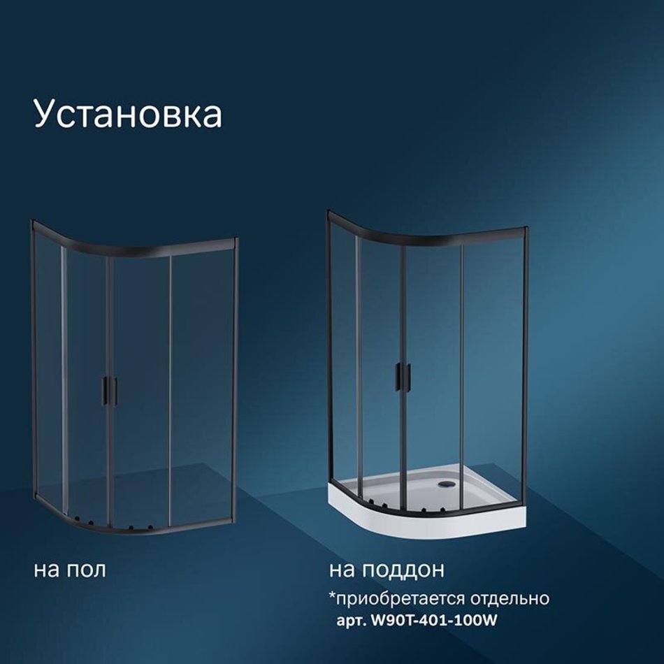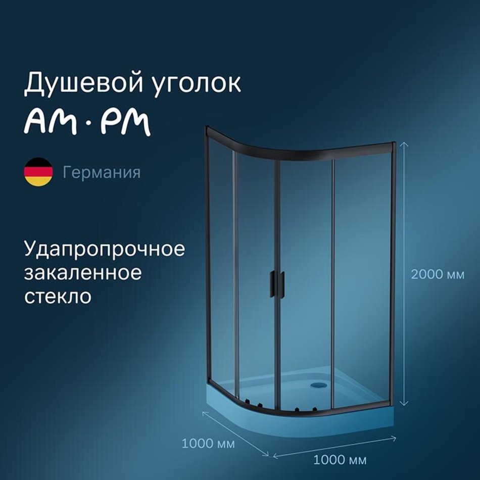 Душевой уголок Am.Pm Gem 100 х 100 см, профиль черный матовый, стекло прозрачное, W90G-401-100BT