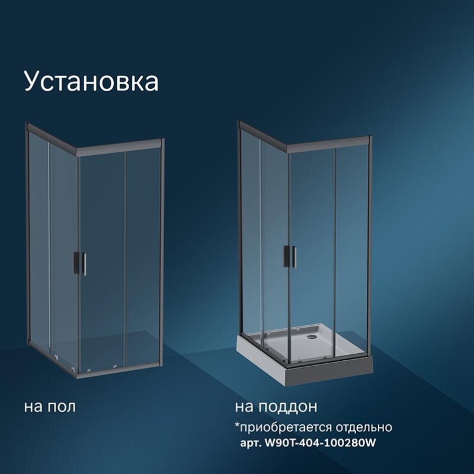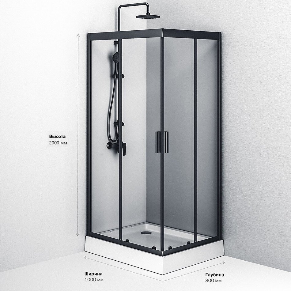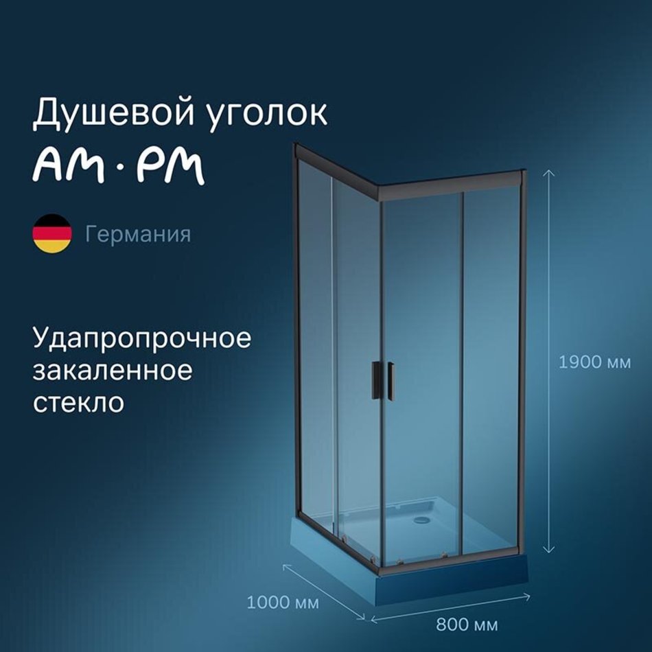 Душевой уголок Am.Pm Gem 100 х 80 см, профиль черный матовый, стекло прозрачное, W90G-404-100280-BT