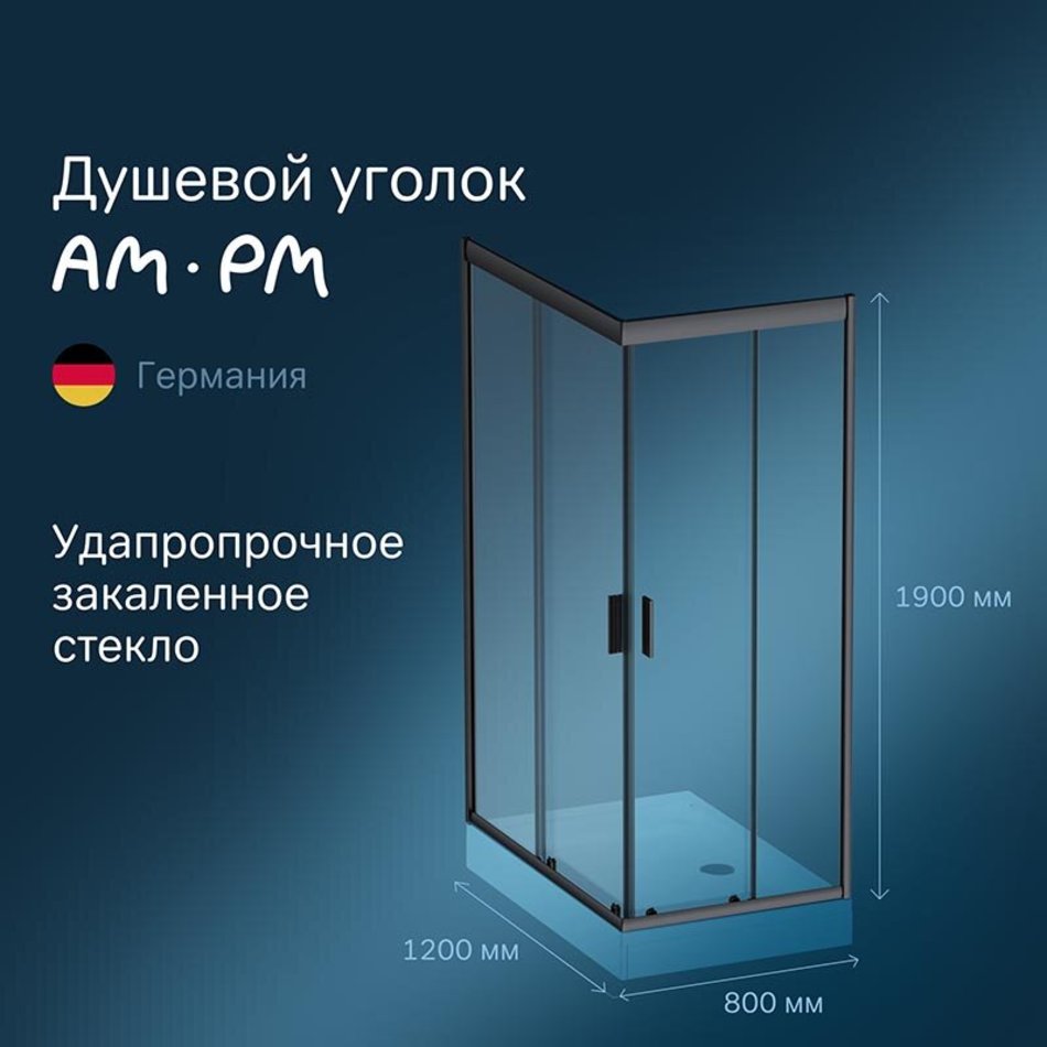 Душевой уголок Am.Pm Gem 120 х 80 см, профиль черный матовый, стекло прозрачное, W90G-404-120280-BT