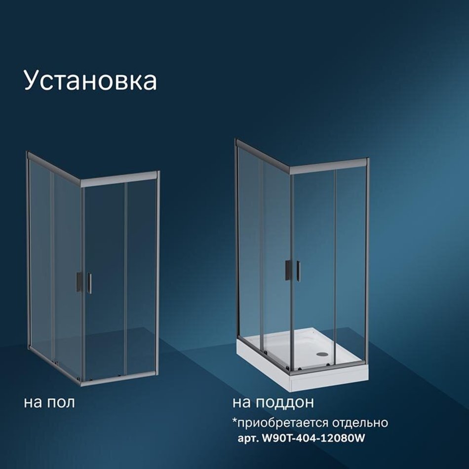 Душевое ограждение совместимо с поддоном - артикул W90T-404-12080W. Приобретается отдельно.