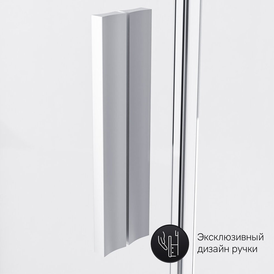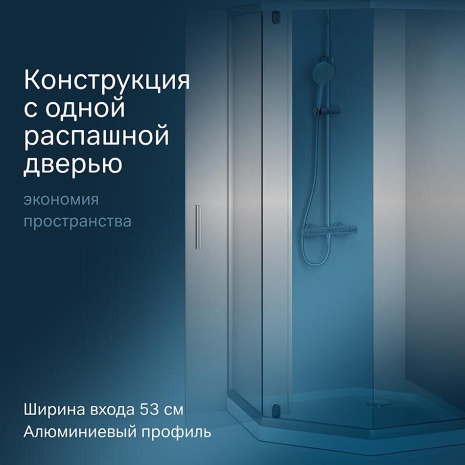 Легкая функциональная конструкция для стильного оформления душевой зоны в ванной комнате. Каждая деталь соответствует высоким требованиям к качеству и эргономике. Дверь слева (петли двери).