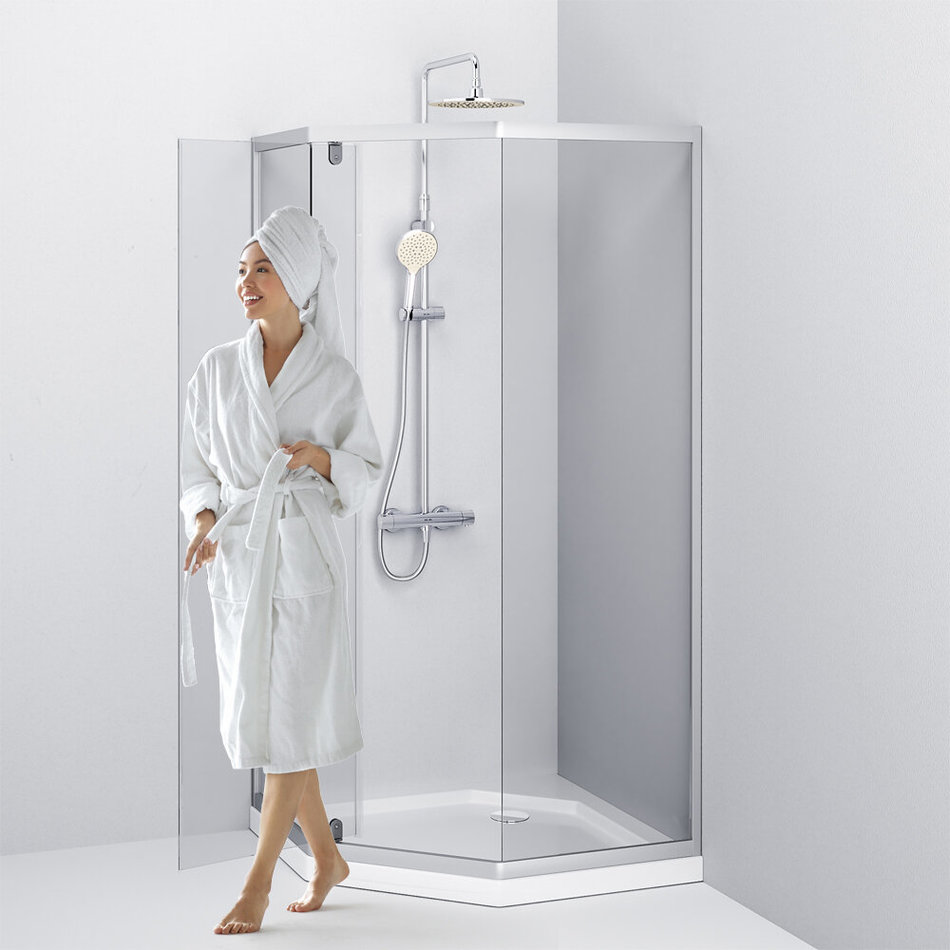 Инновационная система креплений QuickFix позволяет значительно сократить время монтажа. Высота 1900 мм, широкая входная зона и вместительное внутреннее пространство комфортны для людей любой комплекции. Двери ограждения оснащены металлическими роликами для плавного и бесшумного хода. В закрытом виде створки герметично блокируют мокрую зону, избавляя от необходимости уборки ванной комнаты после принятия душа.