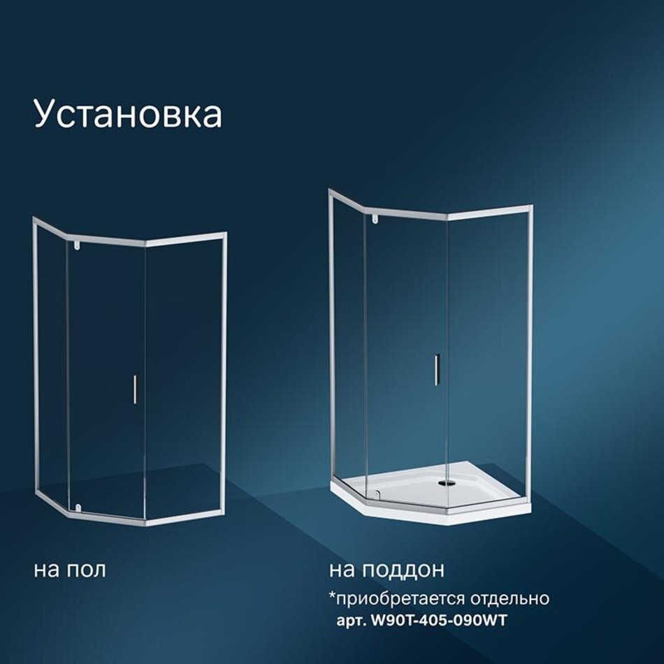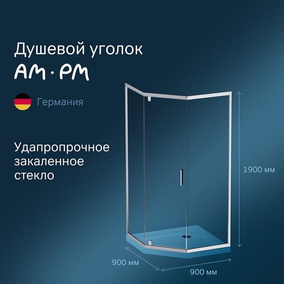 Душевой уголок Am.Pm Gem 5-corner Pivot, 90 х 90 см, профиль матовый хром, стекло прозрачное, W90G-405-090MT