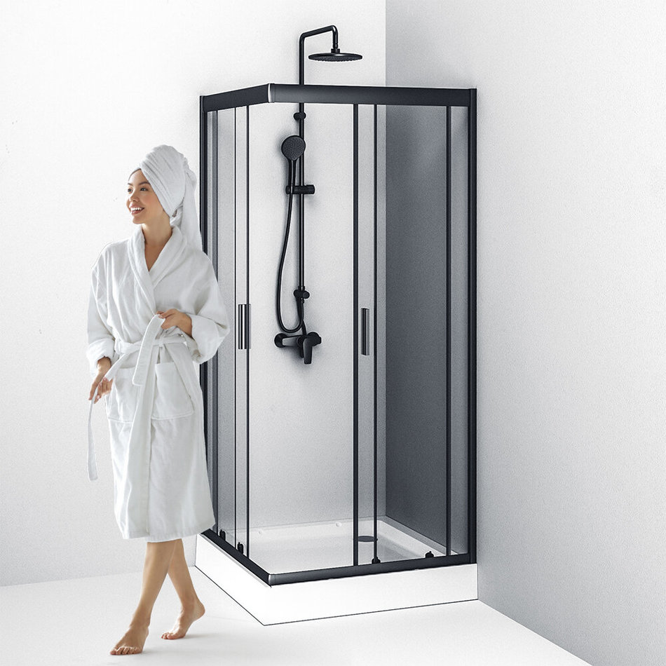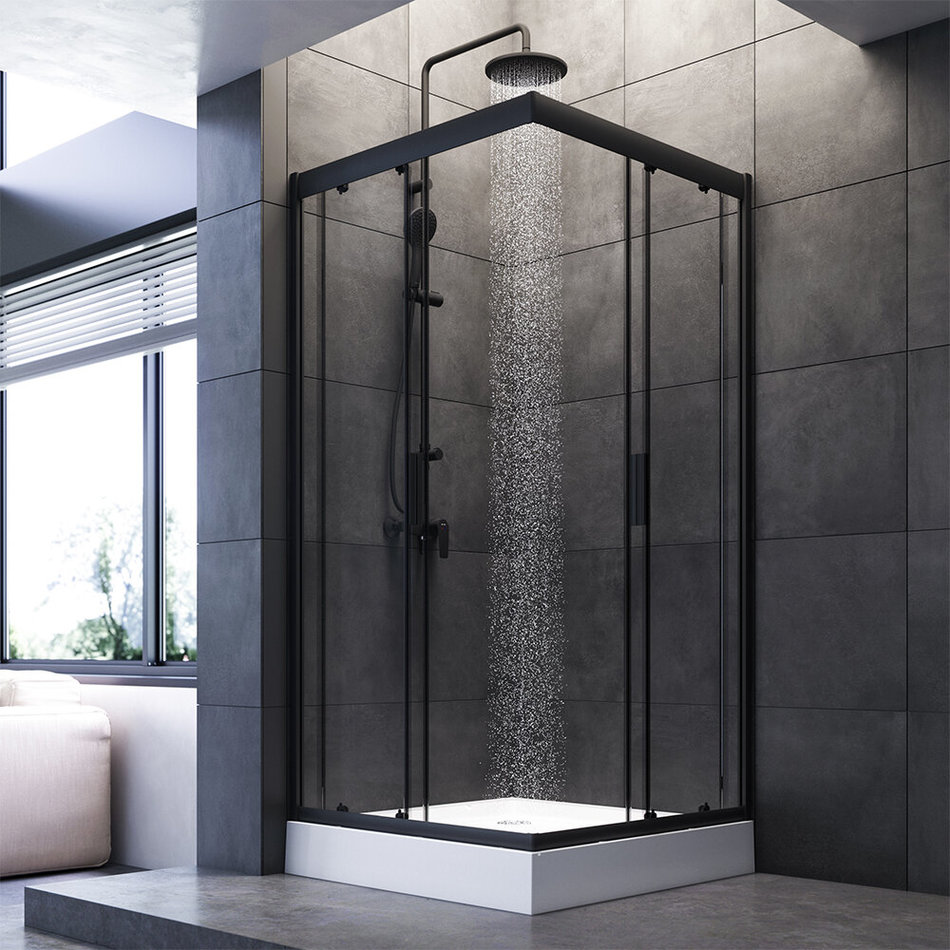 Душевой уголок Am.Pm Gem 90 х 90 см, профиль черный матовый, стекло прозрачное, W90G-403-090BT