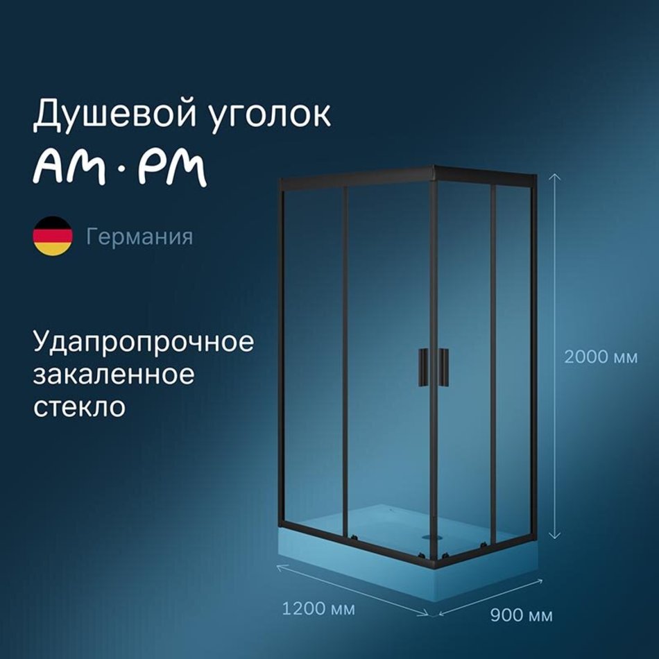 Душевой уголок Am. Pm Gem S Twin Slide, 120 x 90 см, высота 200 см, стекло прозрачное, профиль черный матовый, W93G-404-120290-BT