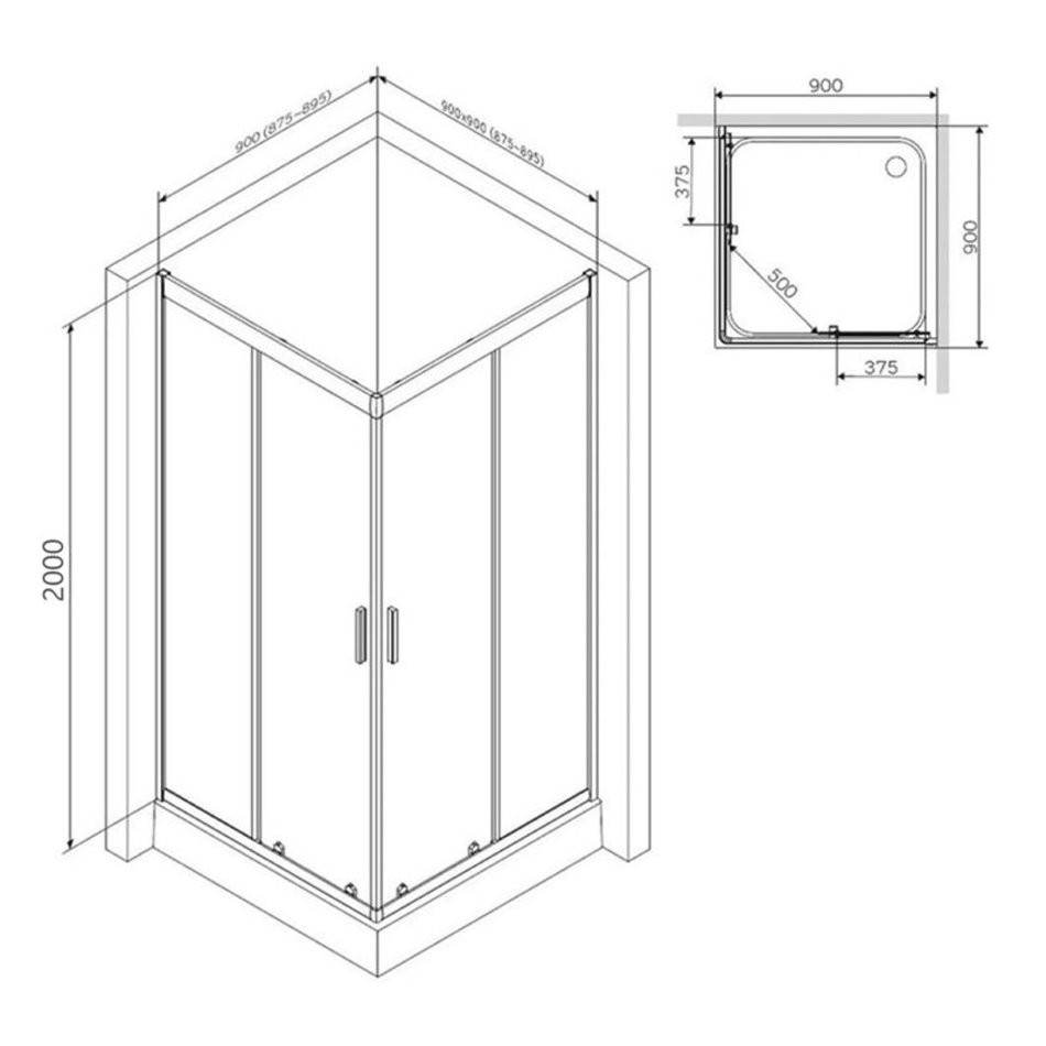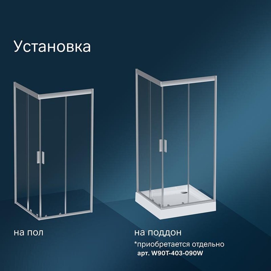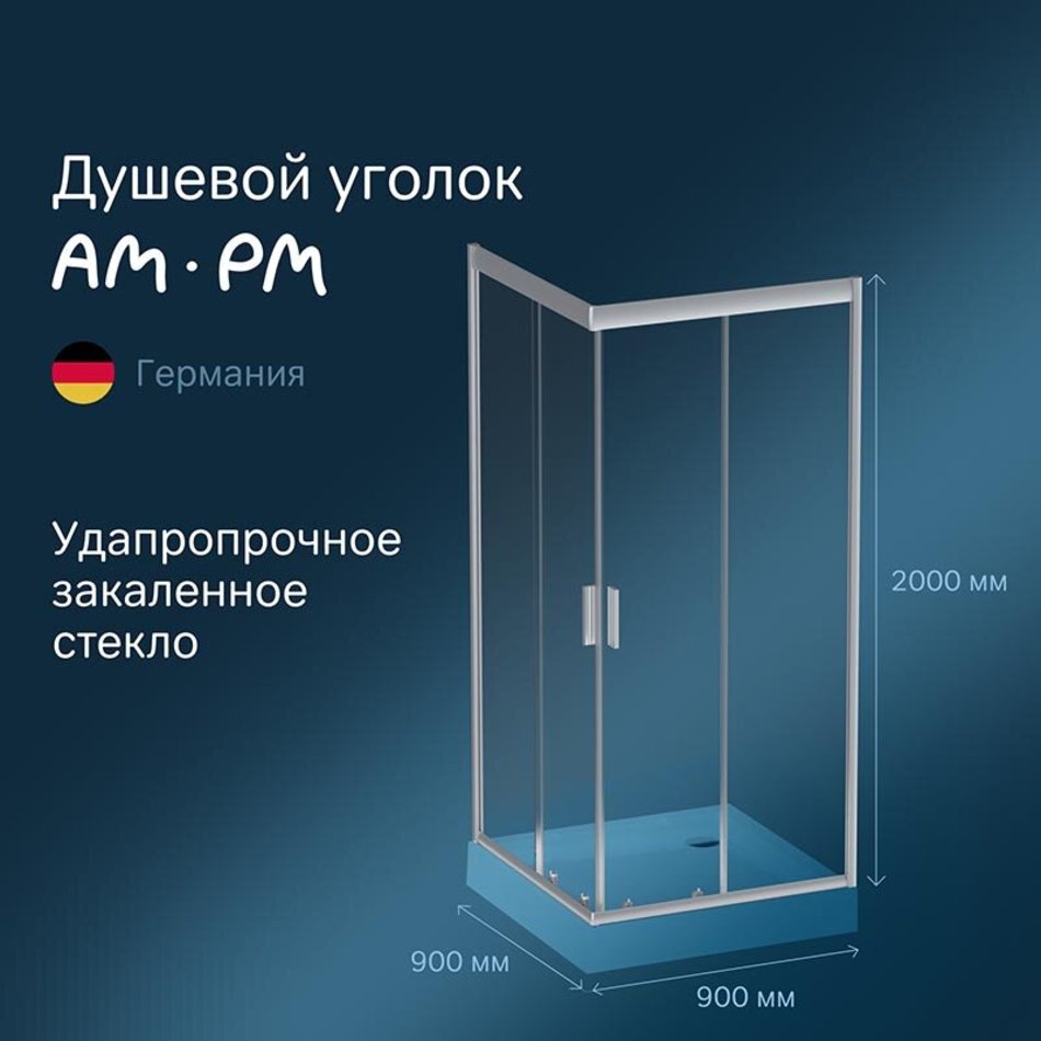 Душевой уголок Am.Pm Gem Square Slide, 90 x 90 см, профиль хром матовый, стекло прозрачное, без поддона, W90UG-403-090MT