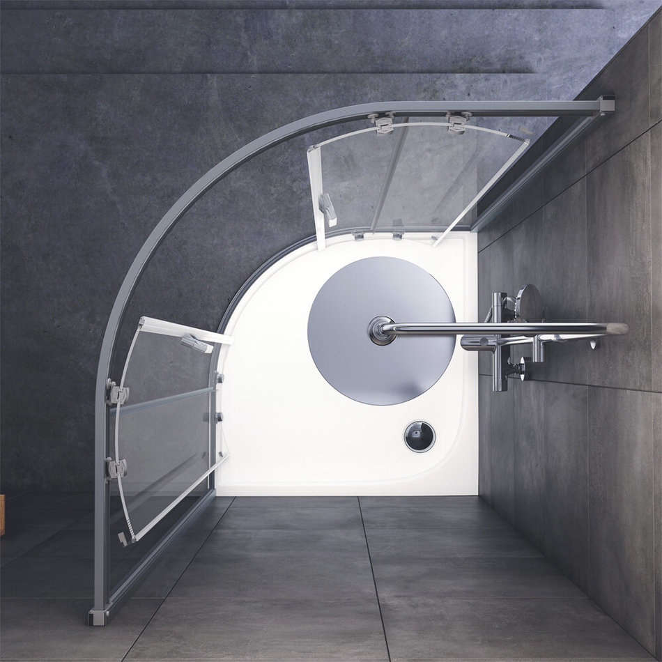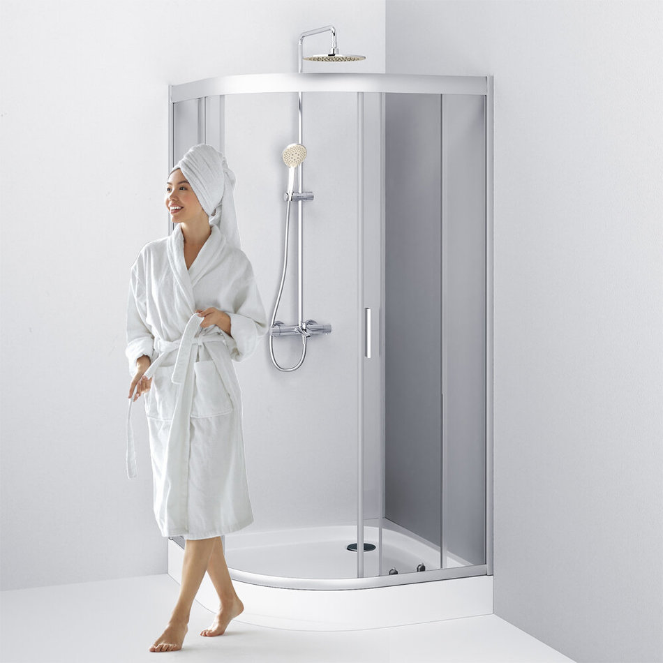Cистема крепления профилей QuickFix - простой и быстрый монтаж душевого ограждения. Надежные хромированные двойные ролики – не менее 150 000 открываний. Прозрачное закаленное стекло толщиной 5 мм. Ручка из алюминия. Высота ограждения без поддона 1900 мм. Поддон приобретается отдельно - W90T-401-100W.