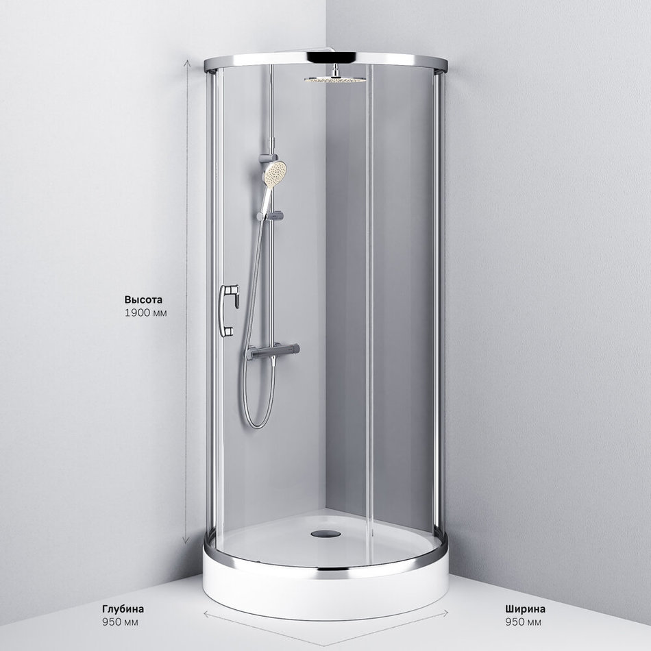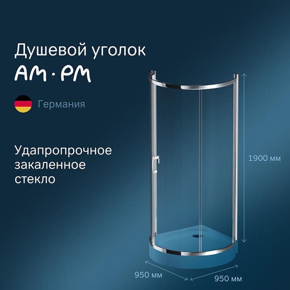 Душевой уголок Am.Pm Like Round 95 x 95 см, профиль глянцевый хром, стекло прозрачное, W83G-333-095CT