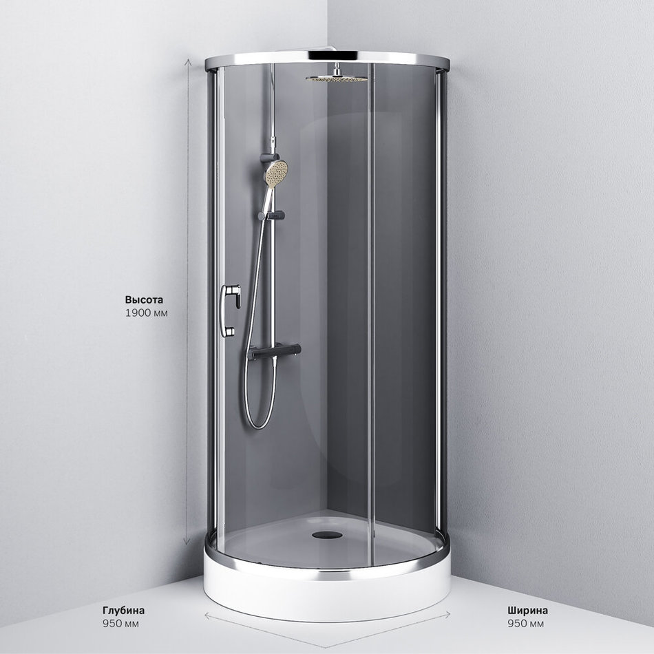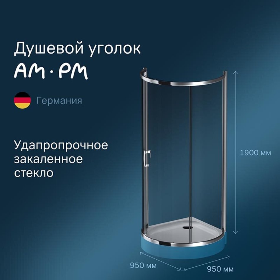 Душевой уголок Am.Pm Like Round 95 x 95 см, профиль глянцевый хром, стекло тонированное, W83G-333-095CG