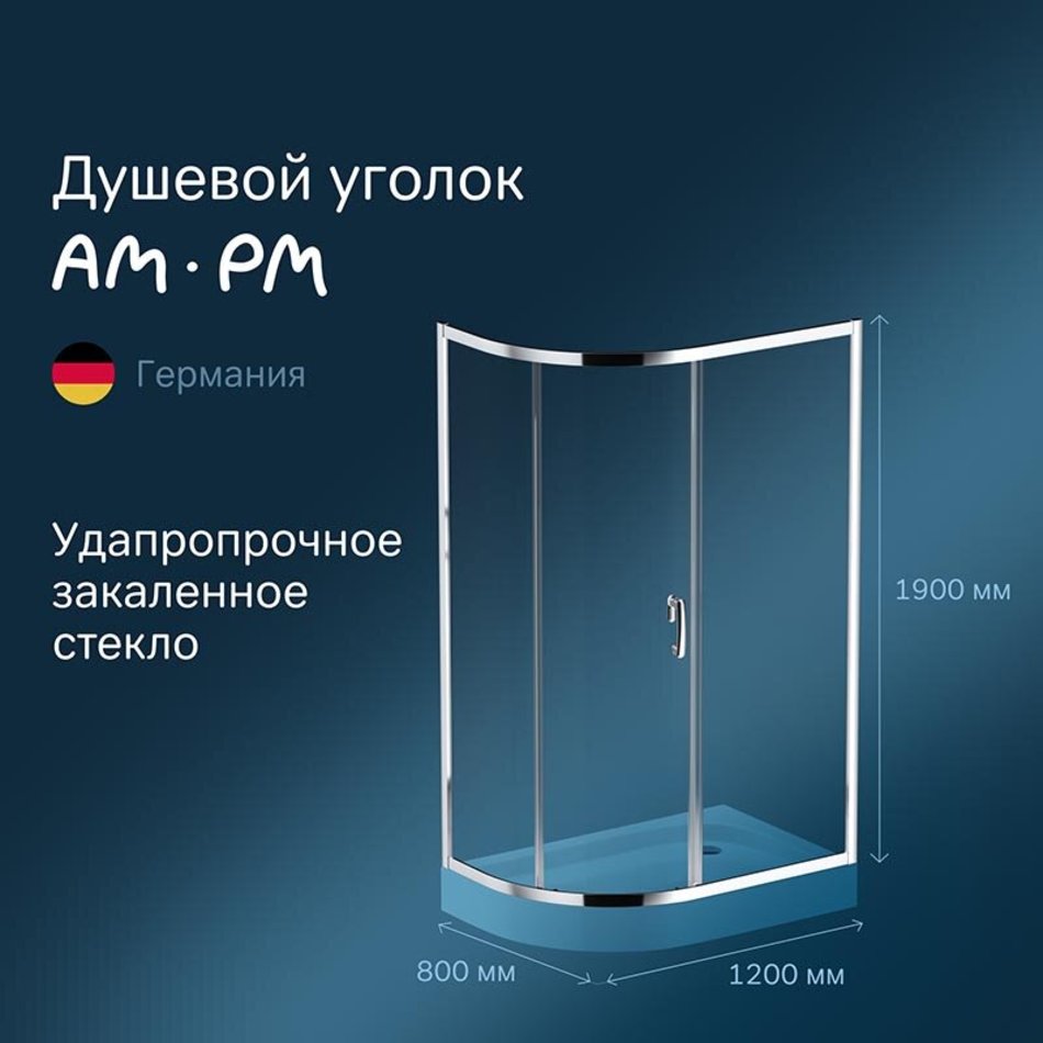 Душевой уголок Am.Pm Like Solo Slide 120 x 80 см, профиль глянцевый хром, стекло прозрачное, W83G-302U120CT