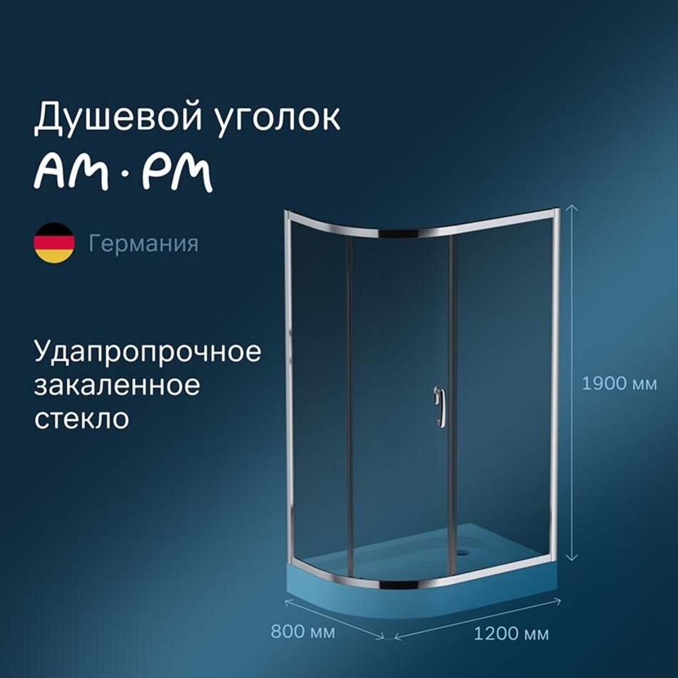 Душевой уголок Am.Pm Like Solo Slide 120 x 80 см, профиль глянцевый хром, стекло тонированное, W83G-302U120CG