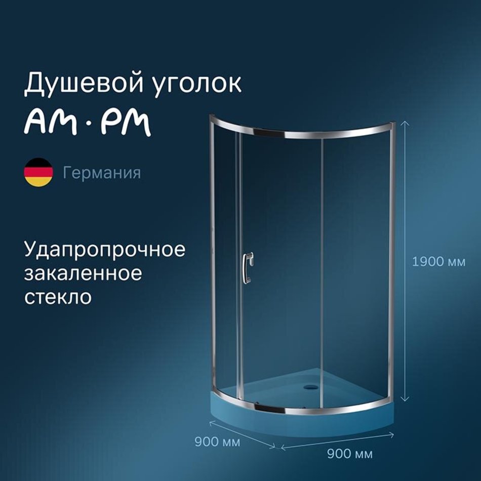 Душевой уголок Am.Pm Like Solo Slide 90 x 90 см, профиль глянцевый хром, стекло тонированное, W83G-315-090CG