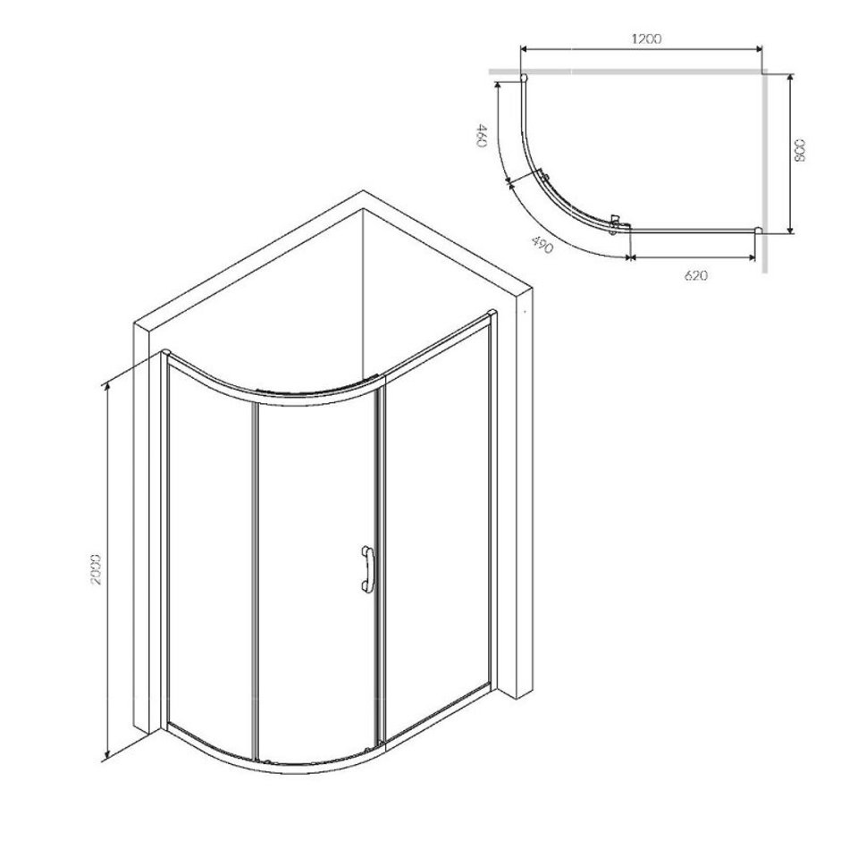 Душевой уголок Am.Pm Like Solo Slide W83UG-302U120CG, 120 x 80 см, профиль хром глянцевый, стекло тонированое