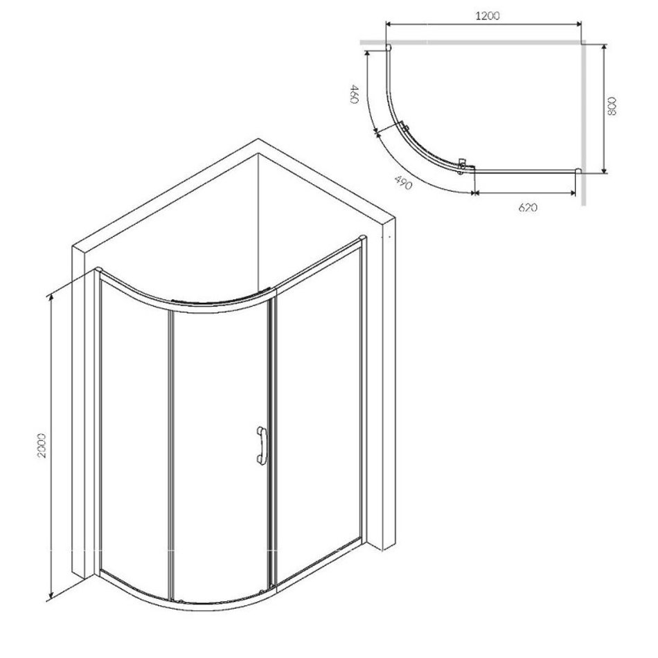 Душевой уголок Am.Pm Like Solo Slide W83UG-302U120MT, 120 x 80 см, профиль матовый хром, стекло матовое