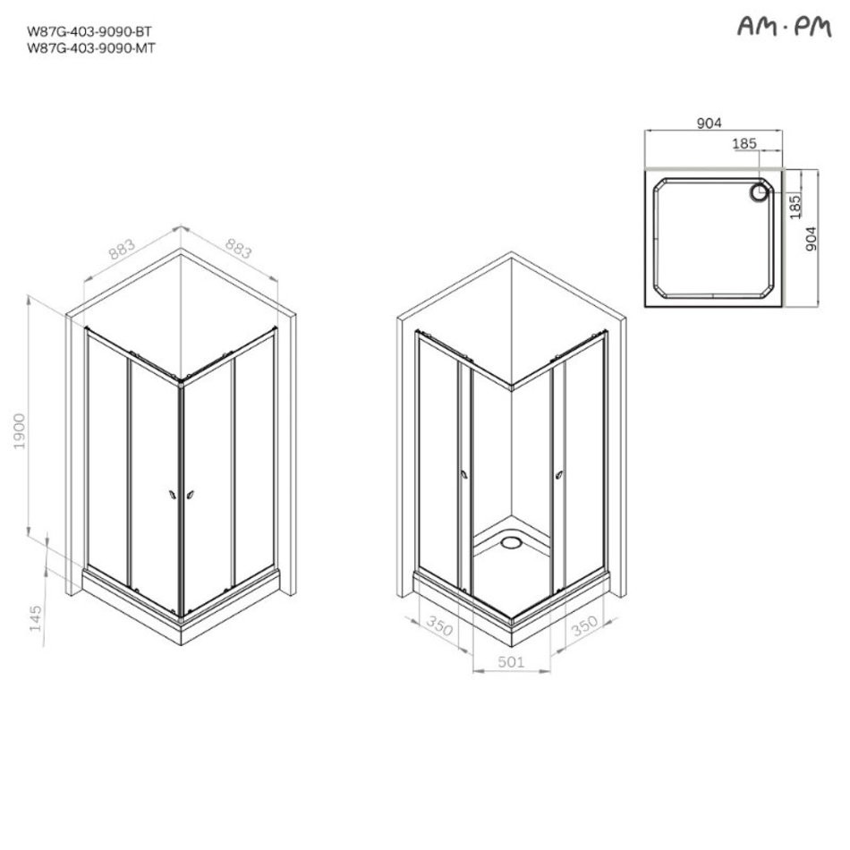 Душевой уголок Am.Pm Sunny W87G-403-9090-MT, 90 x 90 см, стекло прозрачное, профиль хром матовый