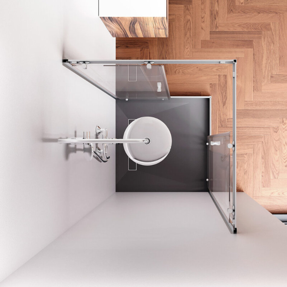 Ограждение имеет сверхпрочные закаленные стёкла. Толщина фиксированных стекол составляет 4 мм, двери имеют увеличенную толщину 5 мм. Невероятно плавное и легкое открывание двери благодаря двойным усиленным роликам из ABS-пластика. Нижние ролики обладают функцией быстрого снятия для самой лёгкой уборки.