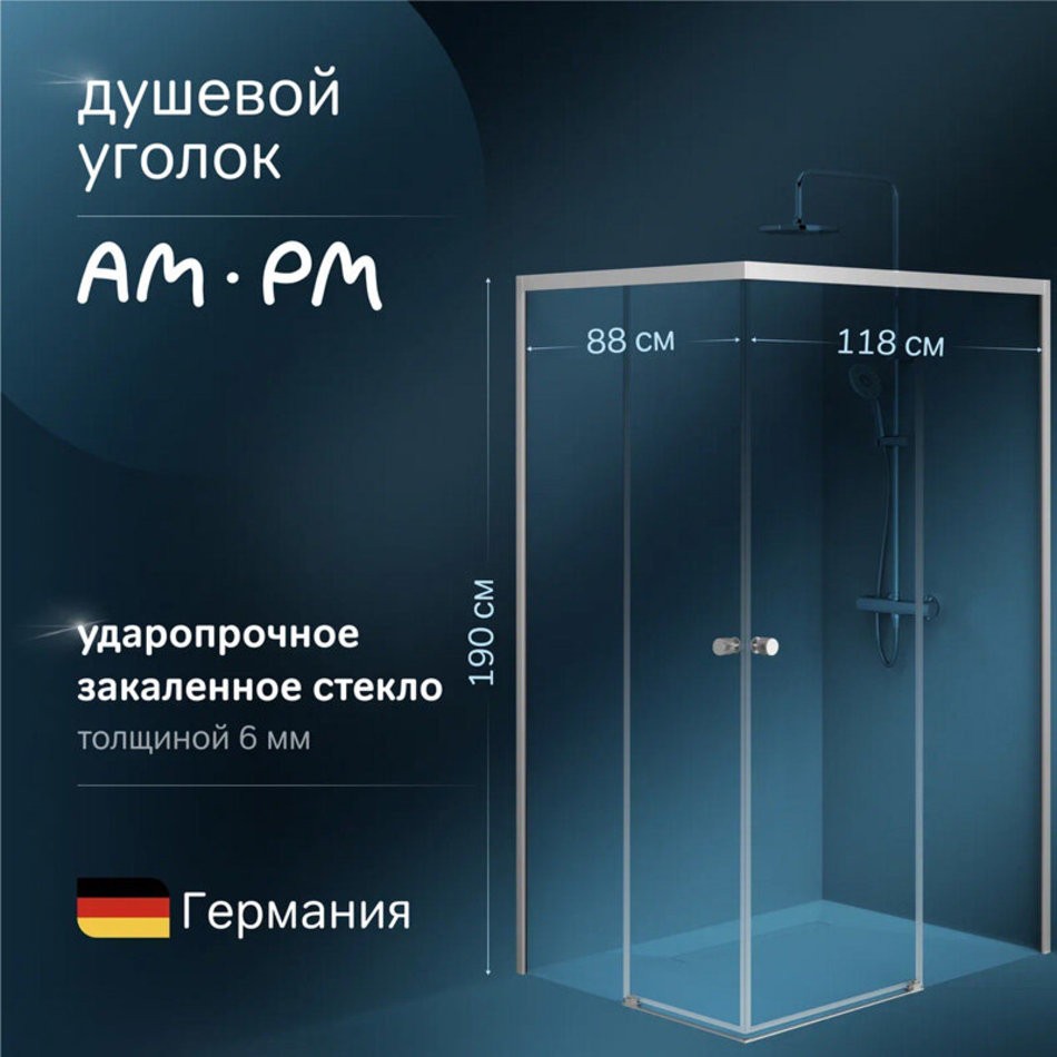 Душевой уголок Am.Pm X-Joy Square Slide 120 х 90 см, профиль хром матовый, стекло прозрачное, W94G-403-12090-MТ