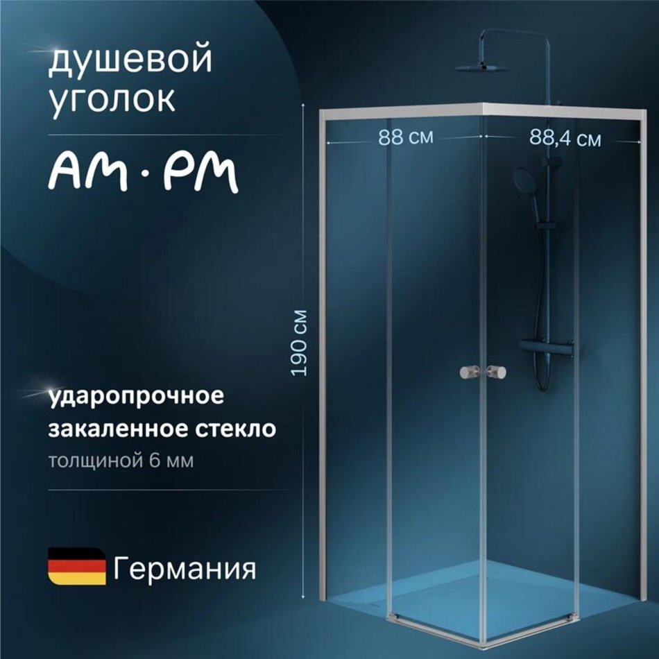 Душевой уголок Am.Pm X-Joy Square Slide, 90 x 90 см, стекло прозрачное, профиль хром матовый, W94G-403-9090-МТ