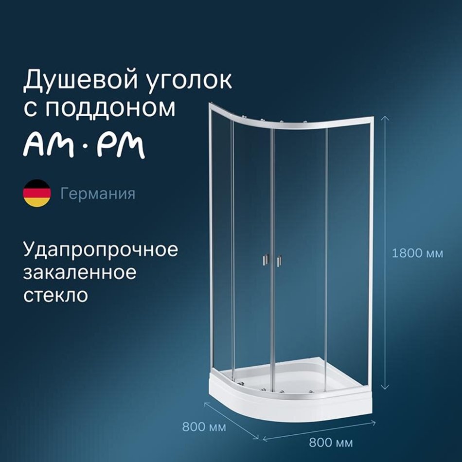 Душевой уголок Am.Pm X-Joy Twin Slide с поддоном, 80 x 80 см, стекло прозрачное, профиль хром матовый, W88E-205-080MT64