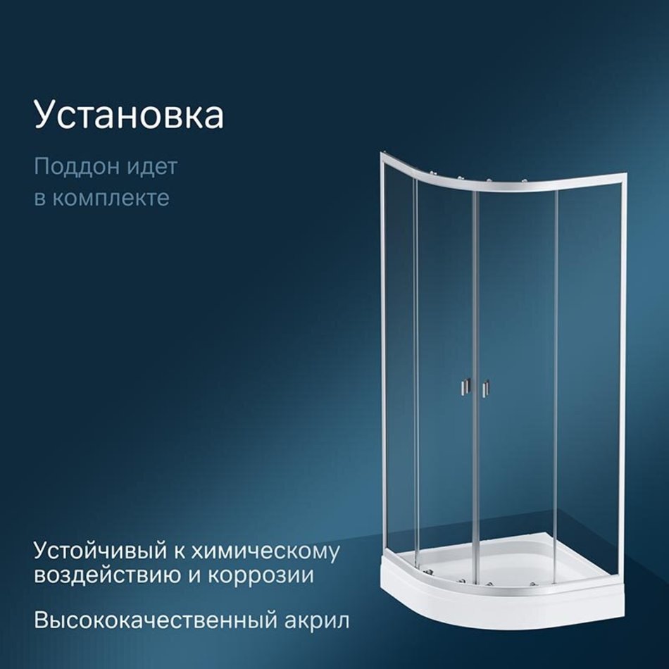 В комплект входит акриловый поддон с идеально гладкой поверхностью. Поддон оборудован съемным экраном что позволит с легкостью обслуживать сифон и проводить проверку пространства под поддоном.