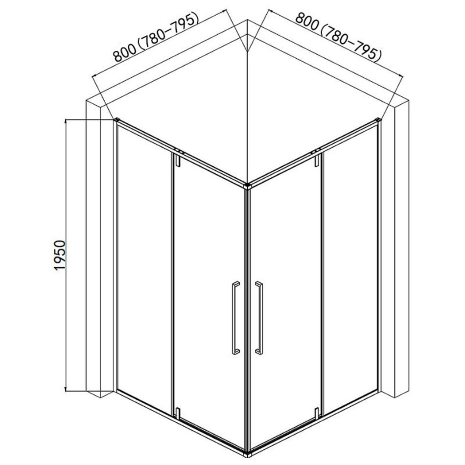 Душевой уголок Aquame, 80 х 80 см, стекло прозрачное, профиль черный матовый, AQM7102-2-8