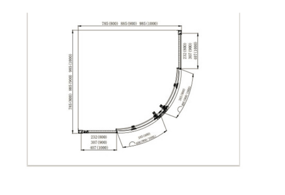 - Тип: двери раздвижные, 1/4 круга