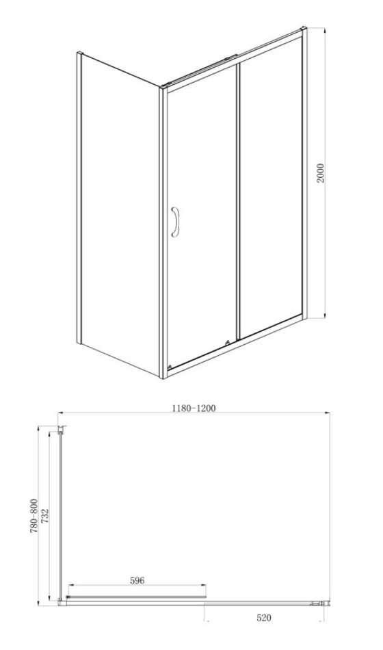 Душевой уголок Azario Milton 120 x 80 см, стекло прозрачное, профиль серебро, открывание правое, AZ-ND1131 R 1200