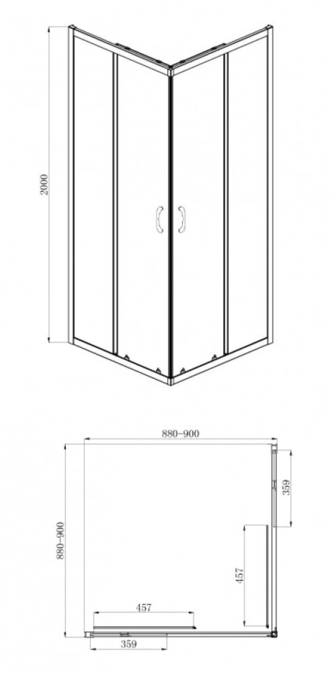 Душевой уголок Azario Milton 90 x 90 см, стекло прозрачное, профиль черный, AZ-ND1142 900 Black