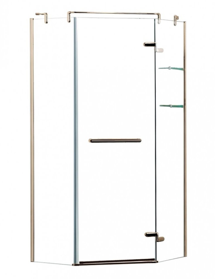 Душевой уголок Azario Montreal 100 x100 см, с полкой, стекло прозрачное, профиль золото, правый, AZNWG32311000R