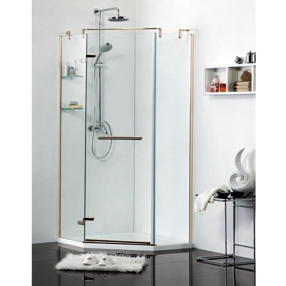 Душевой уголок Azario Montreal 90 x 90 см, с полкой, стекло прозрачное, профиль золото, левый, AZNWG3231900L