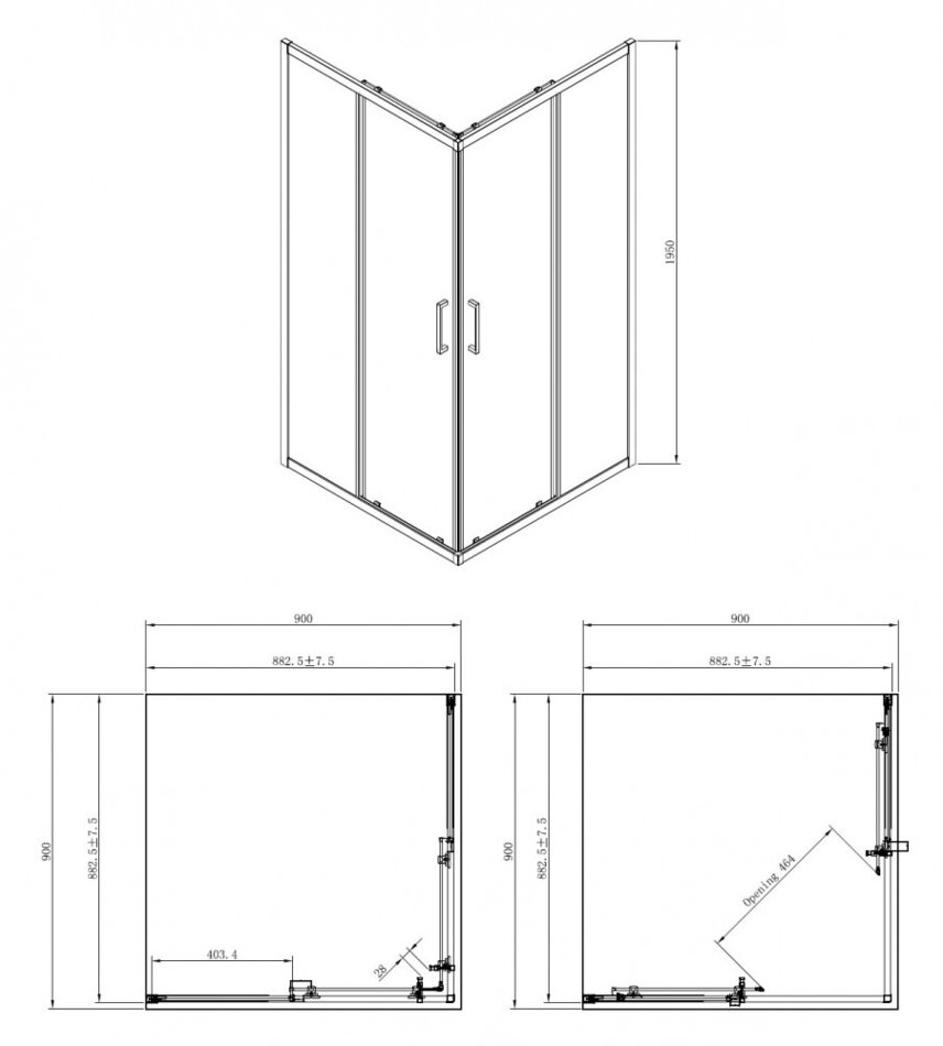 Душевой уголок Azario Seattle 90 x 90 см, стекло прозрачное, профиль хром, AZ-131 S A 90*90*195