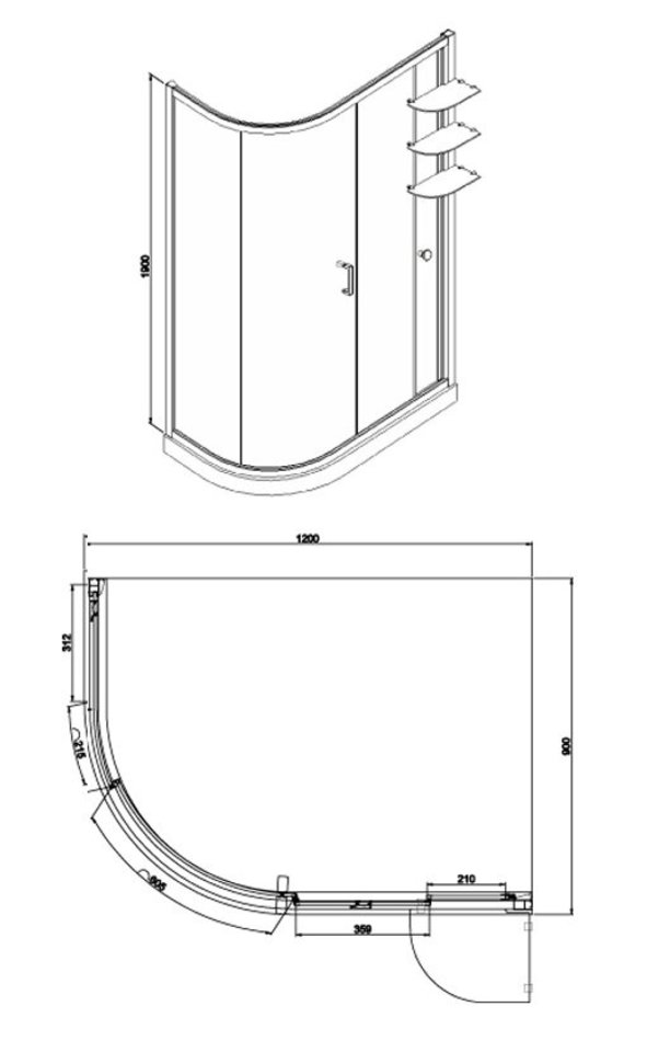 Душевой уголок Azario Victoria 90 x 120 см, стекло прозрачное, профиль хром, открывание левое, AZ-NNQ2131-1-L 900