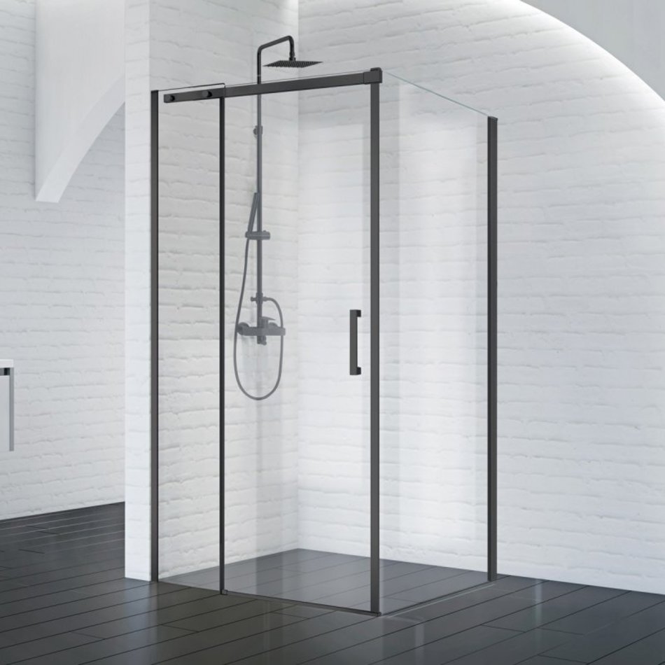 Душевой уголок BelBagno Acqua, 120 х 90 х 195 см, стекло прозрачное, профиль черный матовый, ACQUA-AH-1-120/90-C-NERO
