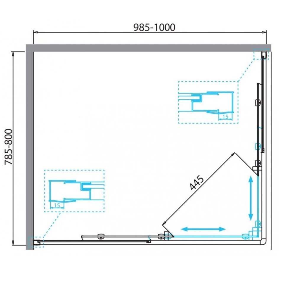 Душевой уголок BelBagno Due, 100 х 80 см, прямоугольный, стекло прозрачное, профиль хром, DUE-AH-2-100/80-C-Cr