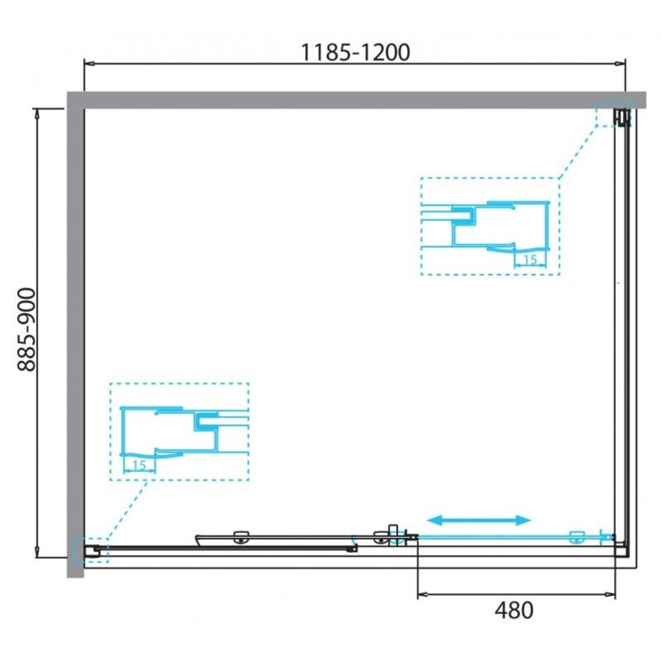 Душевой уголок BelBagno Due 120 х 90 см, прямоугольный, стекло прозрачное, профиль хром, DUE-AH-1-120/90-C-CR