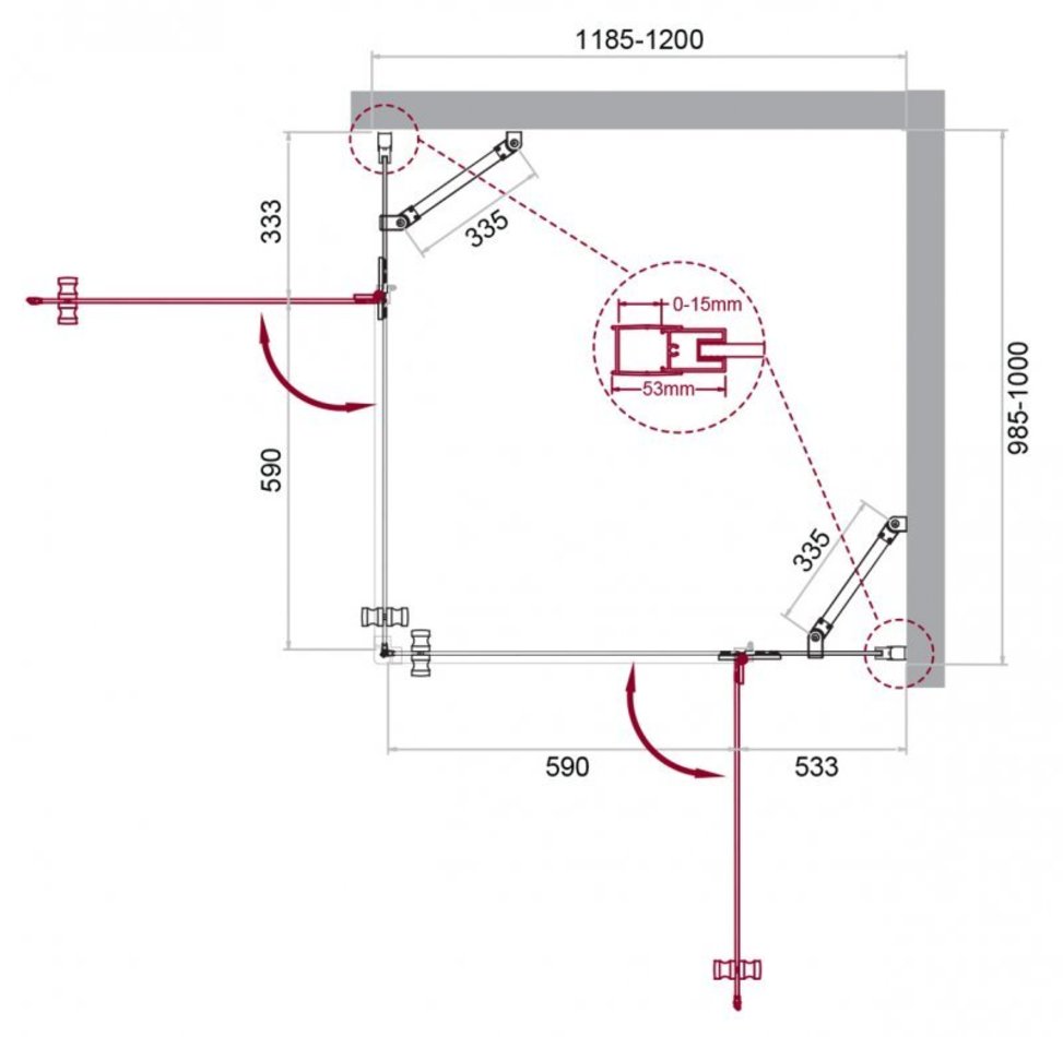 Душевой уголок BelBagno Kraft, 120 х 100 х 195 см, стекло прозрачное, профиль хром, KRAFT-AH-22-120/100-C-Cr-R