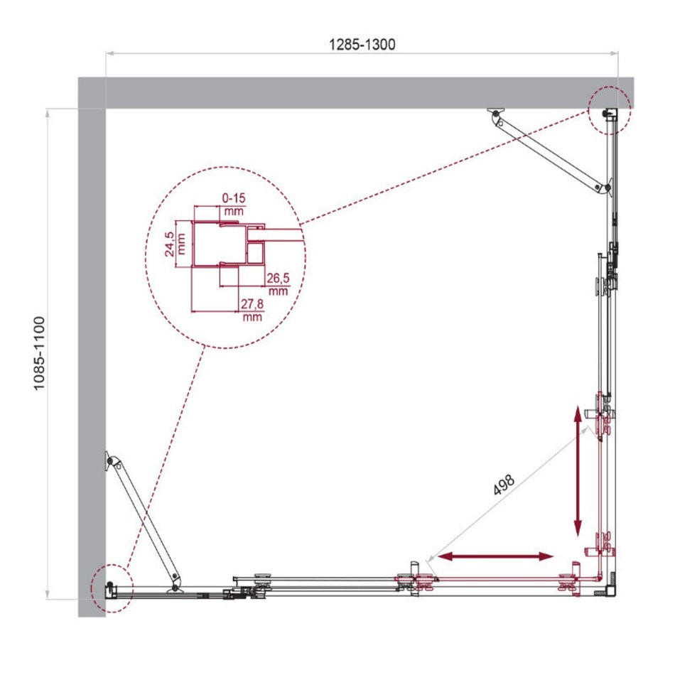 Душевой уголок BelBagno Luce LUCE-AH-22-130/110-C-Cr, 130 х 110 см, стекло прозрачное, профиль хром