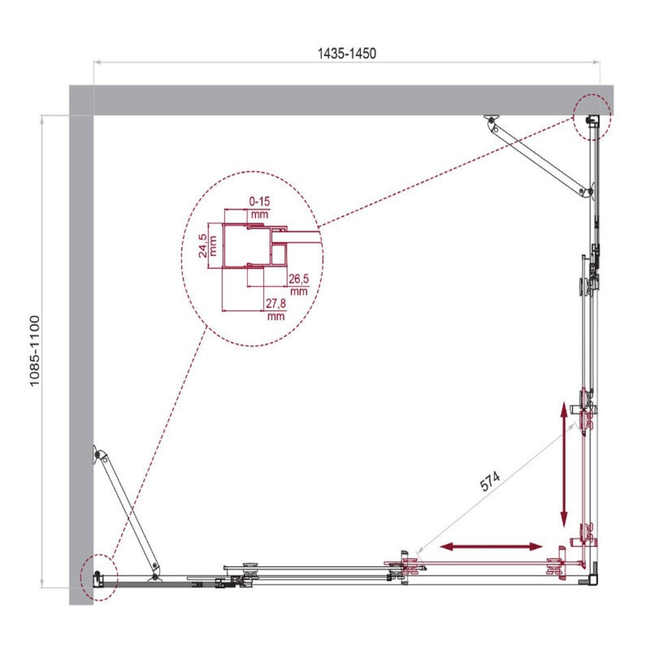 Душевой уголок BelBagno Luce LUCE-AH-22-145/110-C-Cr, 145 х 110 см, стекло прозрачное, профиль хром