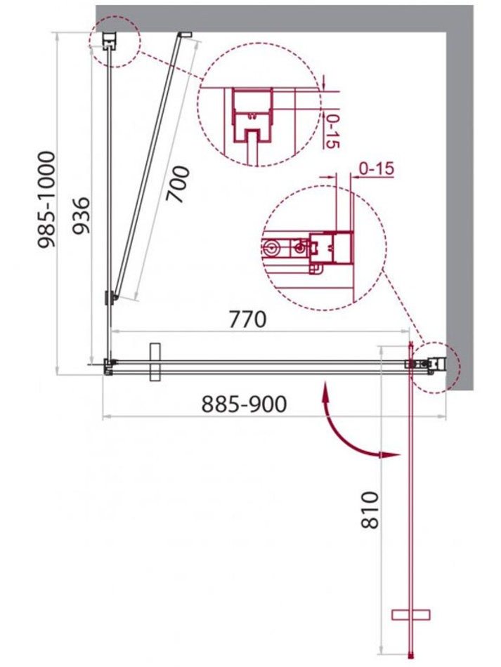 Душевой уголок BelBagno Marmi AH-1-90/100-C-Cr, 90 х 100 х 195 см, профиль хром, стекло прозрачное