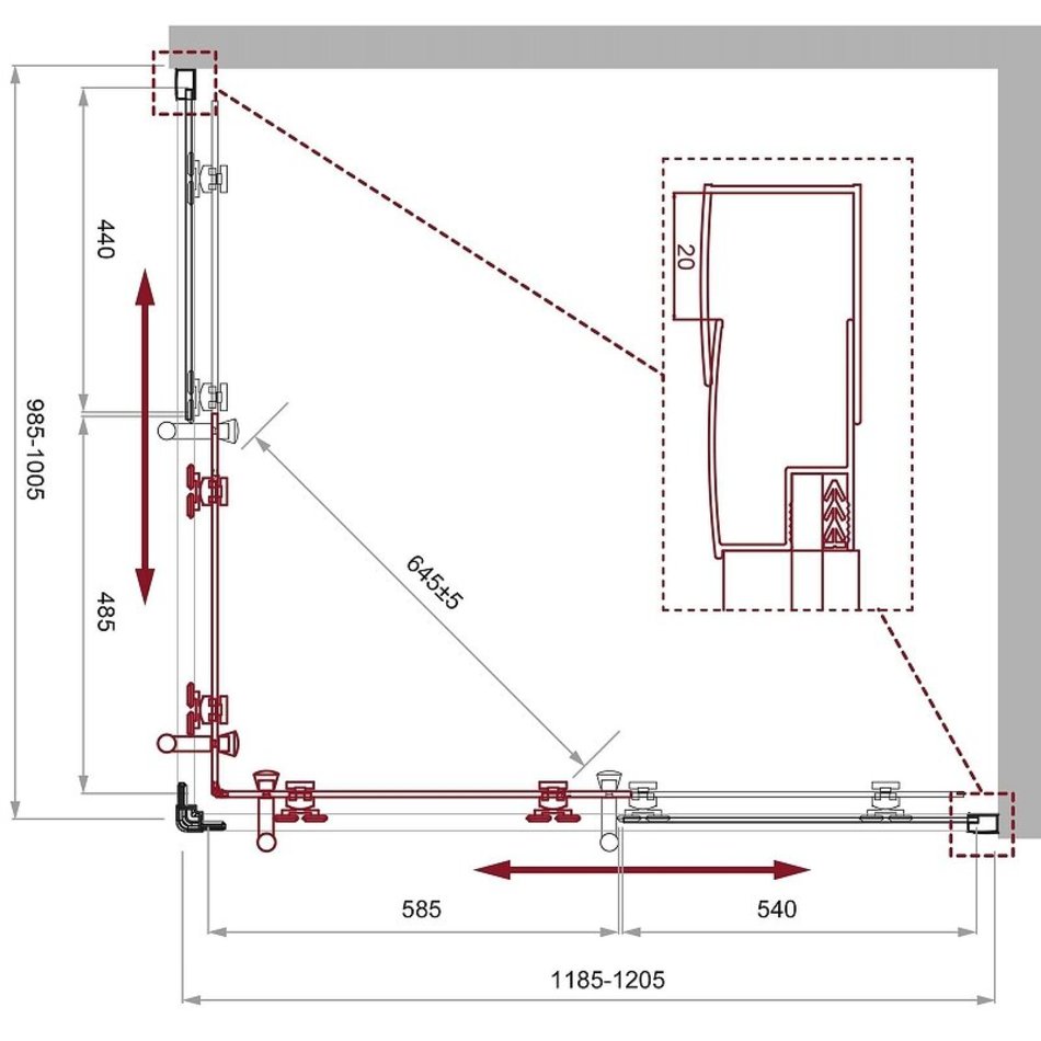 - Регулировка ширины: предусмотрена за счет боковых профилей