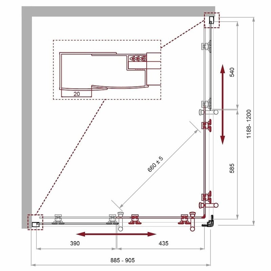 - Регулировка ширины: предусмотрена за счет боковых профилей
