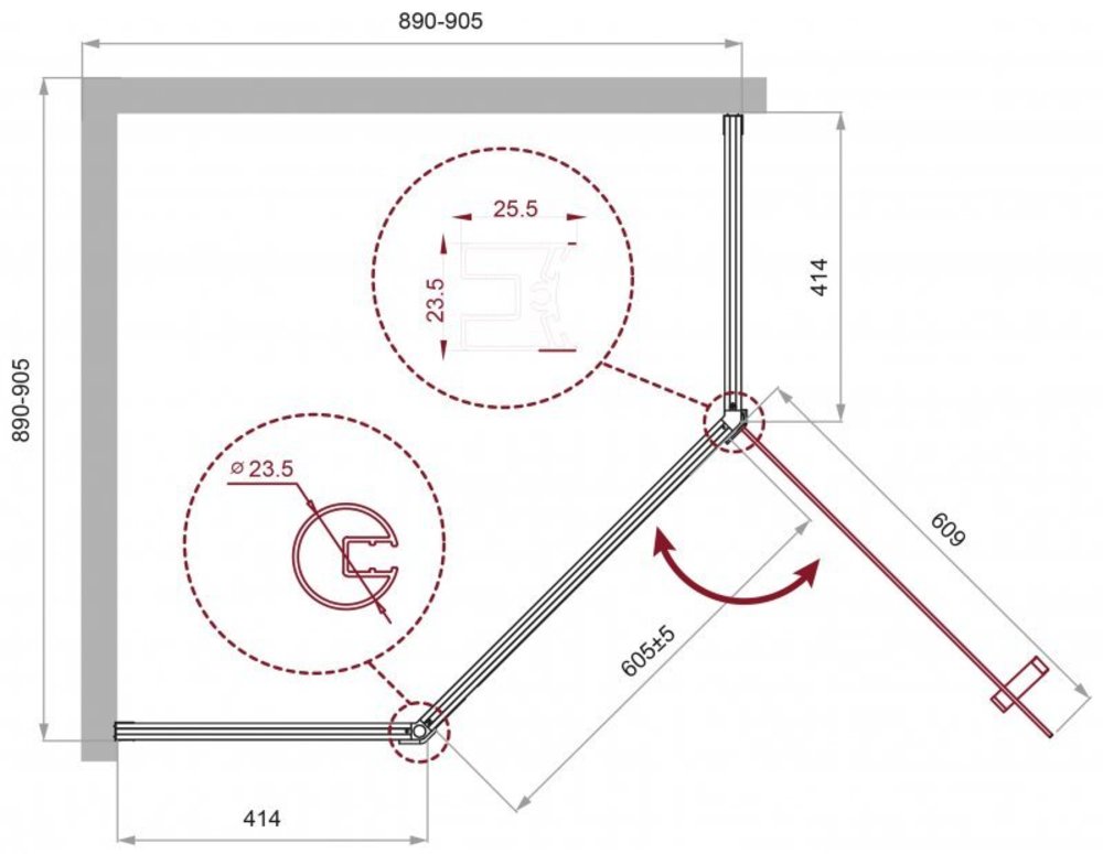 Душевой уголок BelBagno UNO-195, 90 х 90 х 195 см, стекло прозрачное, профиль хром, UNO-195-P-1-90-C-Cr