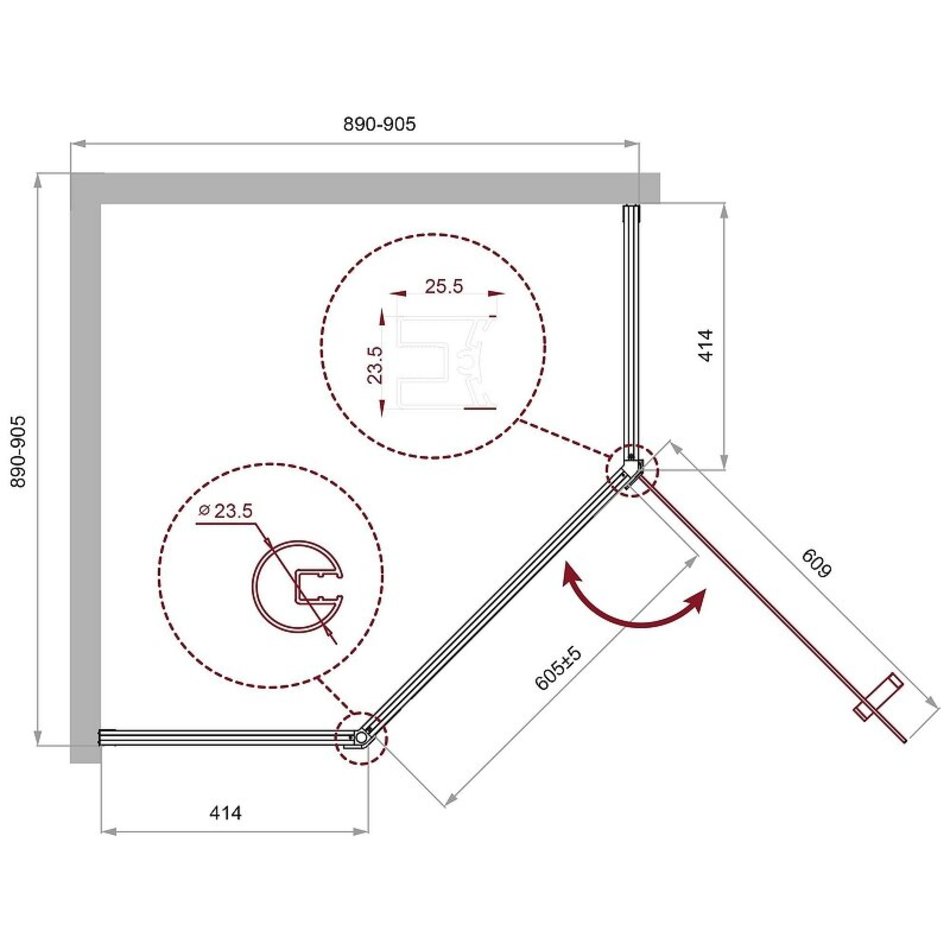 - Материал полотна двери: закаленное стекло, стандарт EN12150-1:2000